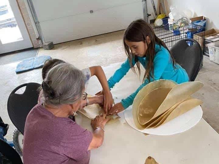 DeRose teaches her great grandchildren how to make a hand drum. Submitted photo